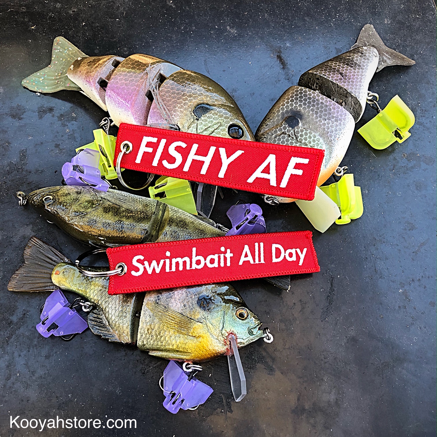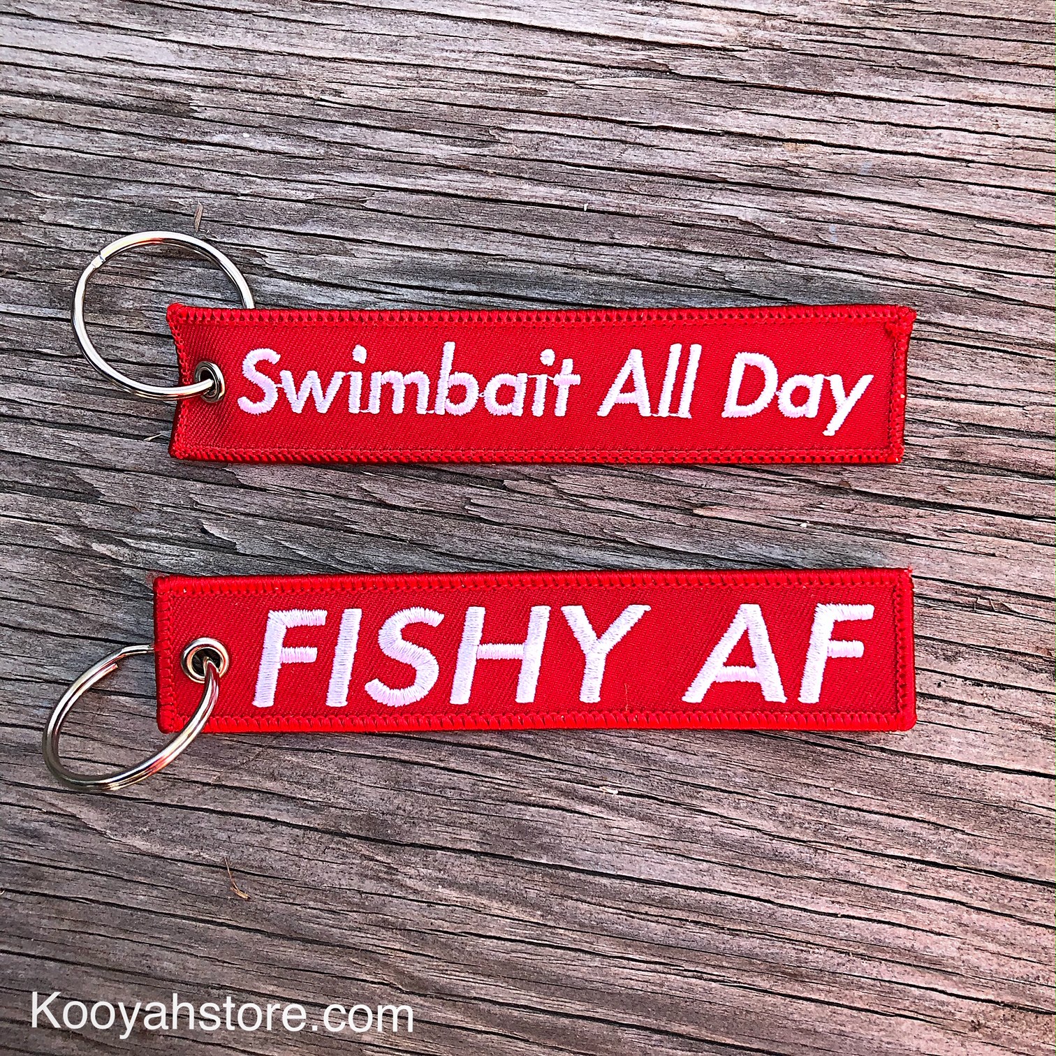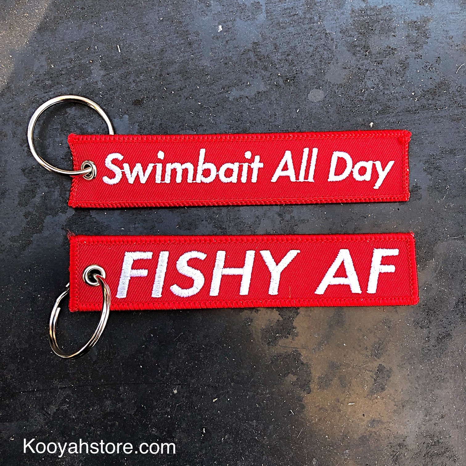 This is for 1 keychain. One side is embroidered “Fishy AF” and the other side “Swimbait All day”